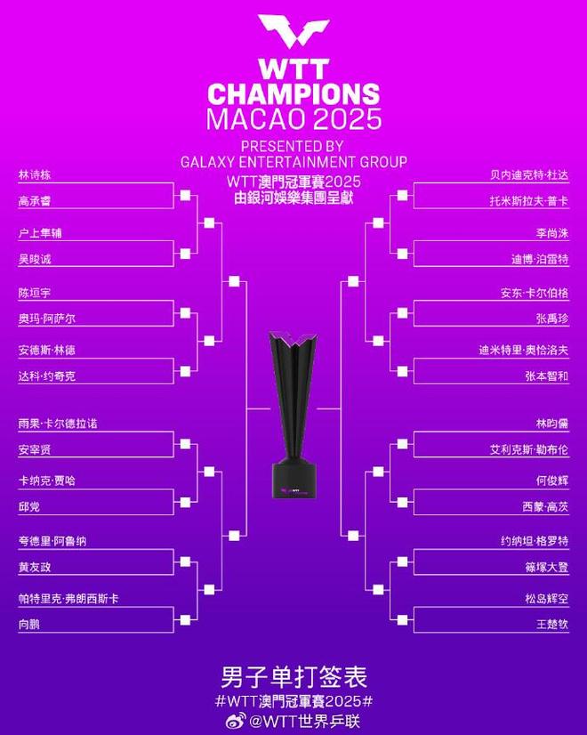 9月7日,北京时代,男孩们的男人参加了WTT澳门锦标赛,朱云和迪亚兹为男子吸引了很多。王·楚平(Wang Chuqin)在第一次旋转时与马特达·惠良(Matsuda Huiko)和马特萨达·惠霍(Matsuda Huiko)踢球,而全国网球队在上半场比赛中有4名男子。 The first spin of Chinese tennis tennis team corresponds to Lin Shidong vs Gao Chengrui, Chen Yuananu vs Asar, Huang Youzheng vs Aruna, Xiang Peng vs Francesca, Wang Chuqin vs Songdao Huakl Sun Yingsha vs Hershey, Wang Yidi vs vs CHEN YI VS JIN NAYING, CHEN Xingtong VS Zhang An,Wang Manyyu vs Zheng Yi Jingmin单打彩票[1/8] Lin Shidong vs Gao Chengrui(中国台北),Tosaka Hayasu vs Wu Shicheng [2/8] Chen Yuanyu vs oma-a。 Zhang Yuzhen, Dimitry Ocharov vs Zhang Benzhihe [7/8 District] Lin Yunju (Taipei, China) vsTa, Matsushima District] Sun vs Anna Hesey, Bernadette Szokos vs Hanna Gundam [2/8 District] Adriana Diaz vs Sofia Polkanova, Guan Zhuolin vs Wang Yidi [3/8区] Shin Yubin,Elizabeta-Samara vs Zhang Benmi-Hiang[5/8区] Chen Yi vs Jin Naying,Brett-Rirland vs Han Ying [6/8区域]